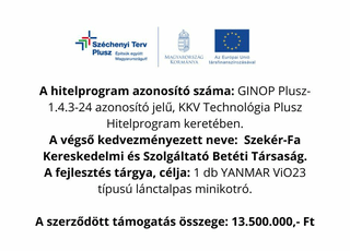 GINOP Plusz-1.4.3-24 azonosító jelű, KKV Technológia Plusz Hitelprogram keretében 13.500.000 Ft összegű kamatmentes hitellel hajtott végre cégünk fejlesztés.